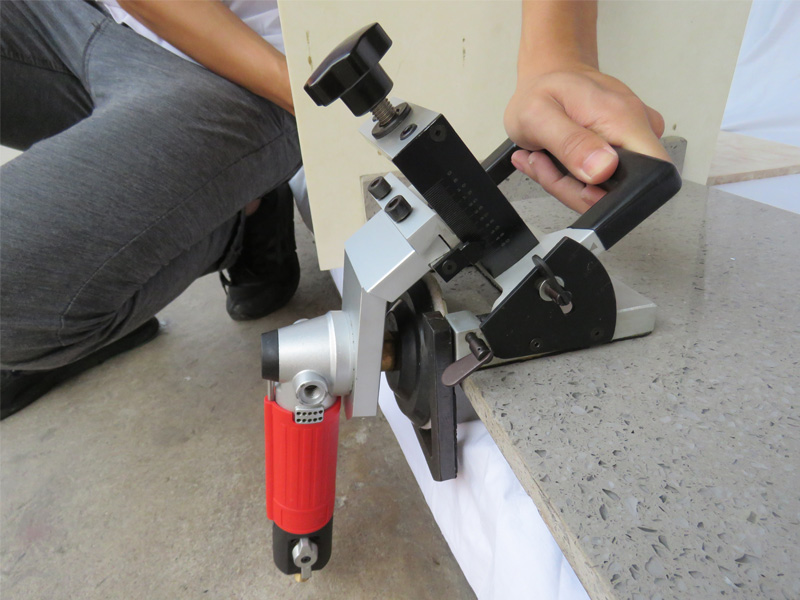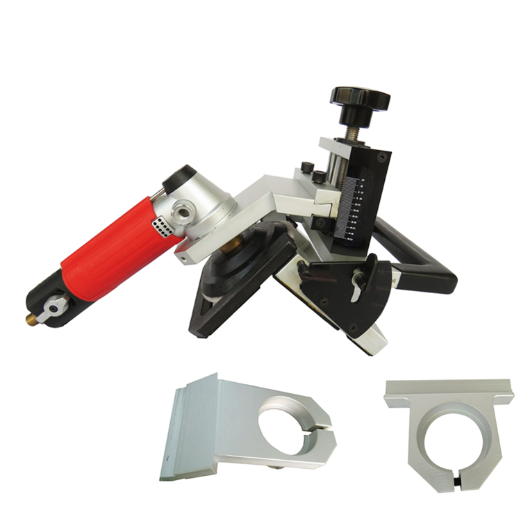 多功能倒角磨邊機架配上氣動水磨機后,可倒角15°-45°和磨90°邊,工具簡單易懂,可隨時替換配