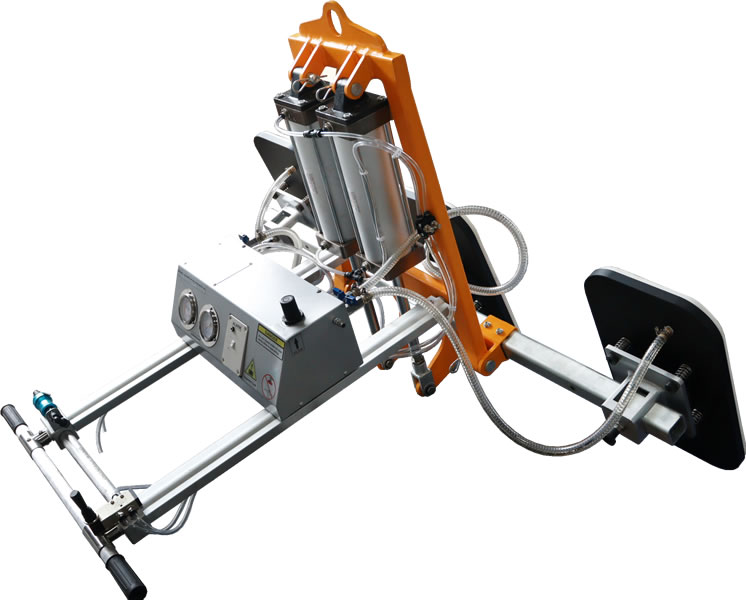 This vacuum lifter is designed to lift smooth or rough marble and granite slabs. Pneumatic vertical-horizontal tilting 0 to 90°.
